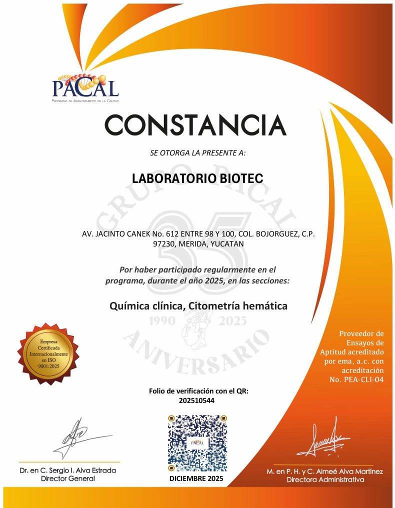 Contamos con certificaciones de PACAL que avalan nuestros procesos y resultados.
